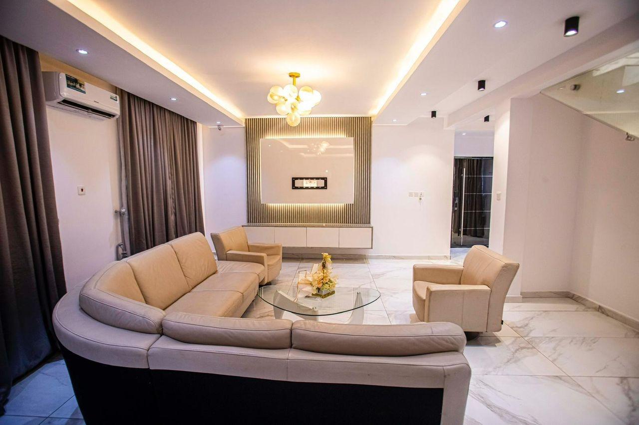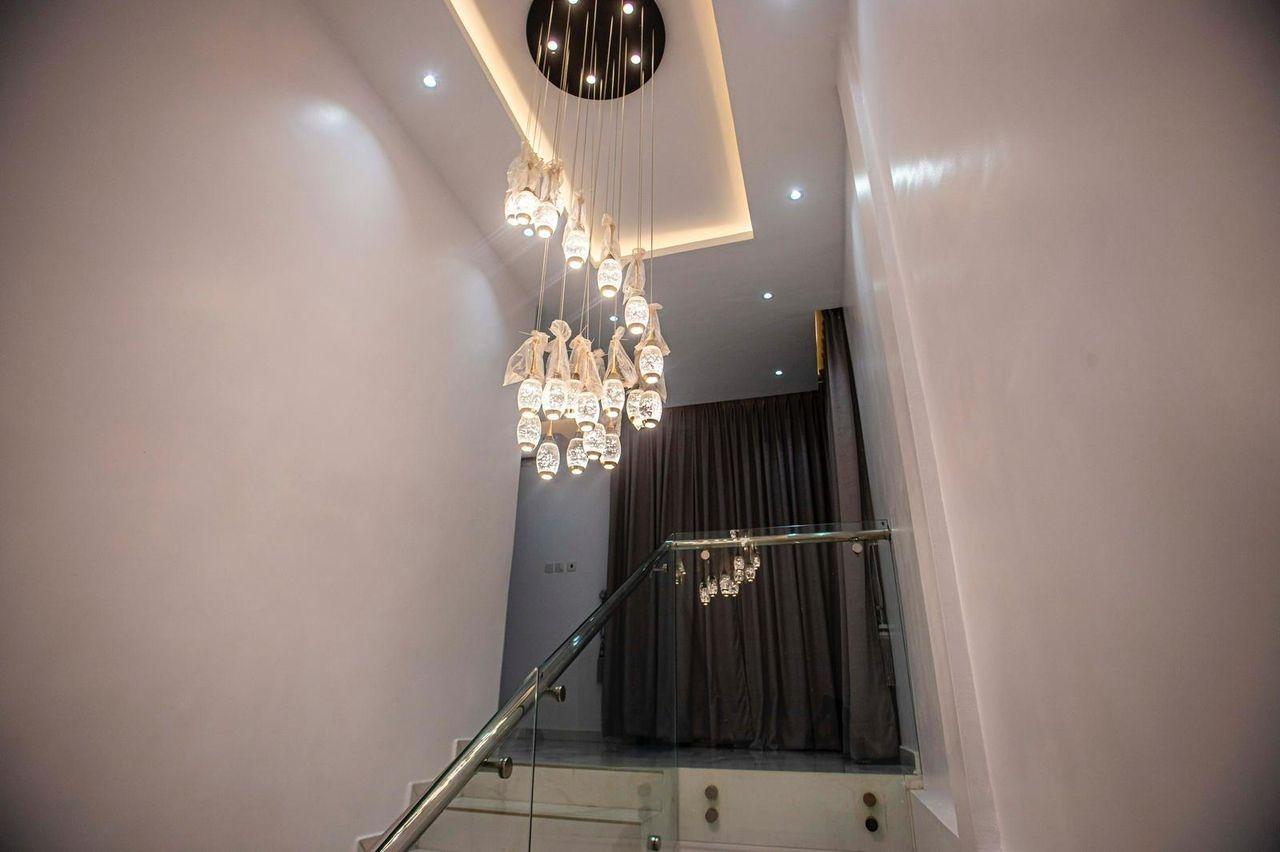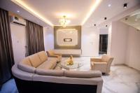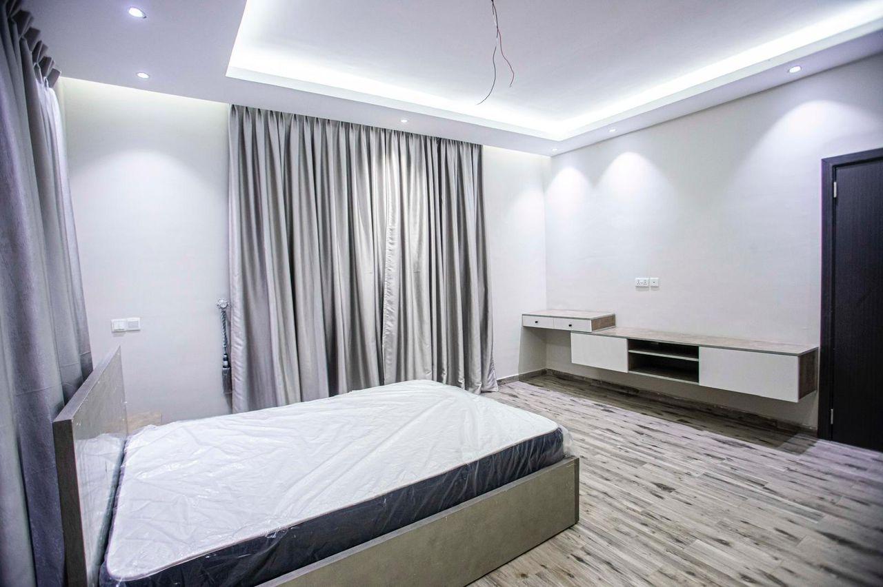 All roooms are ensuite Kitchen fully equipped (fridge, gas work top buner, extractor , over, microwave and washing machine . Kitchen store room Tv unit console and wardrobes in alll rooms Fixed curtains Sofa. Front pivot door with key card and passcode entry. cctv system installed Electric fence installed Remote gate control installed 24 hr borehole water supply Inbuilt shower and concealed WC #Beedecor&homes