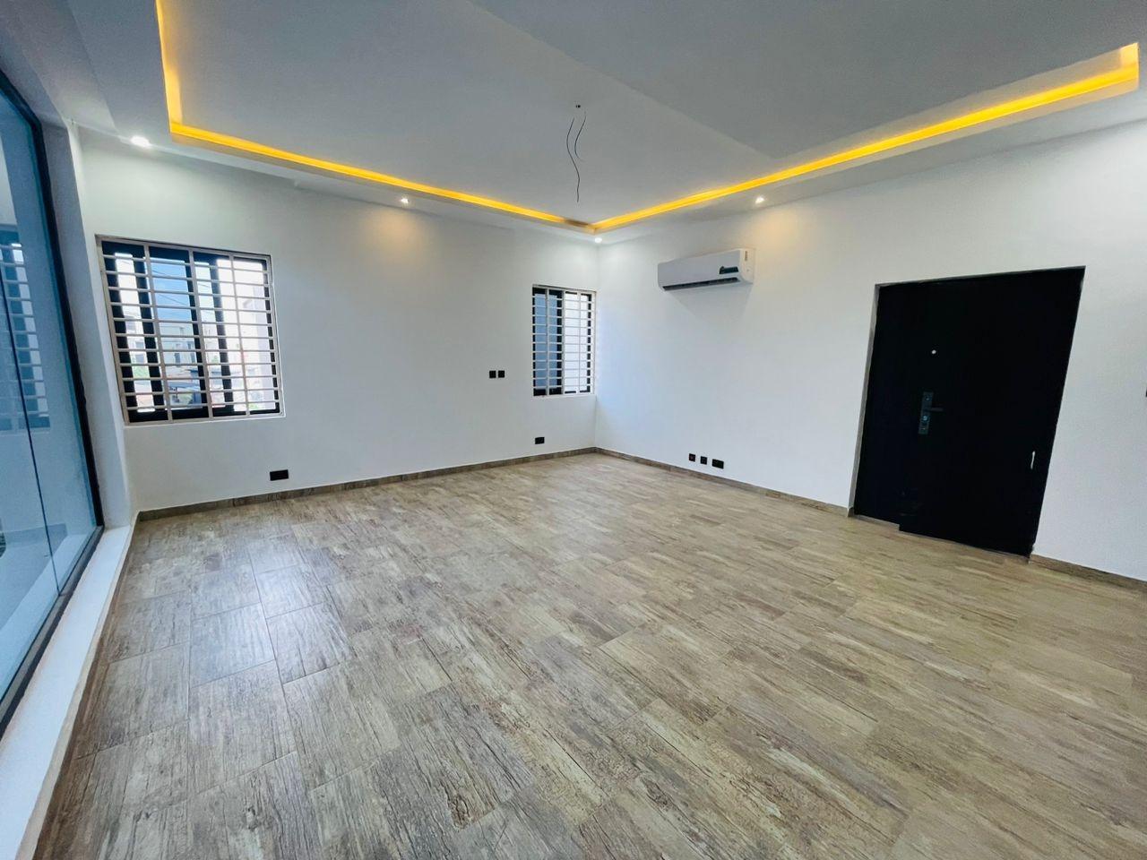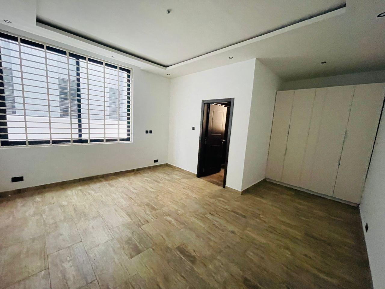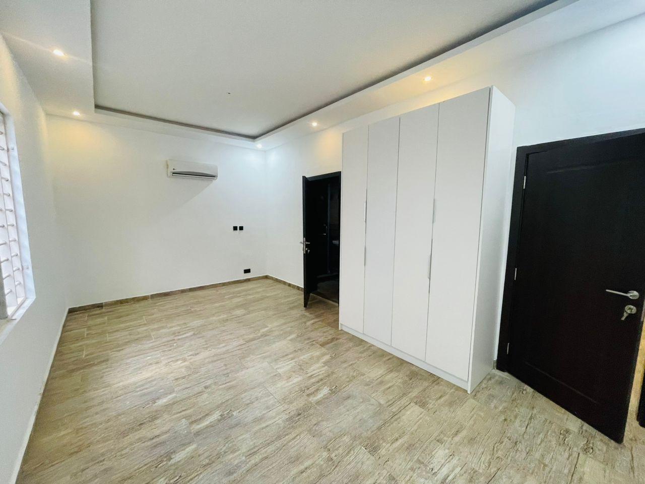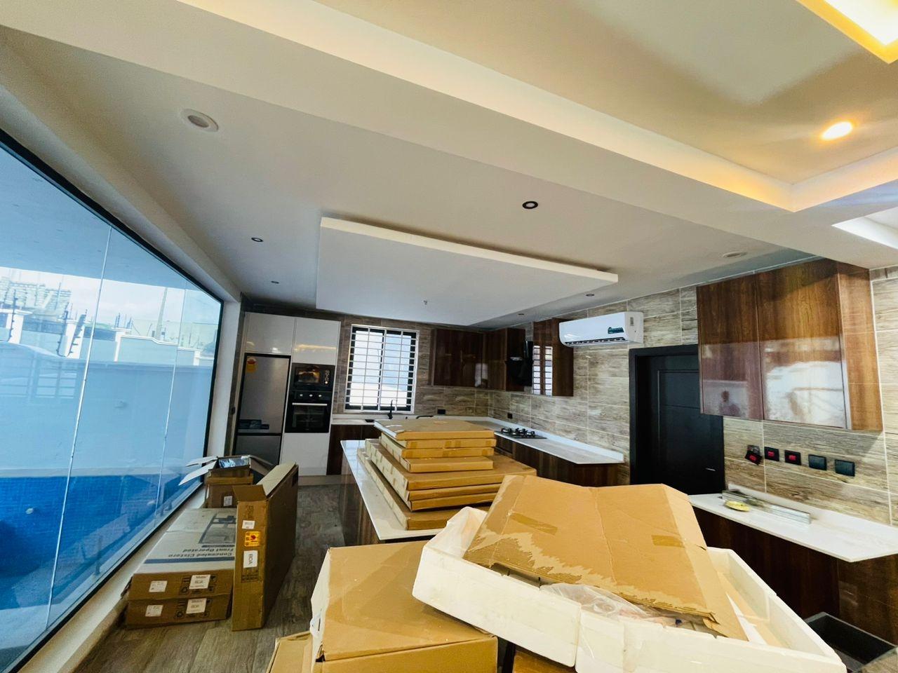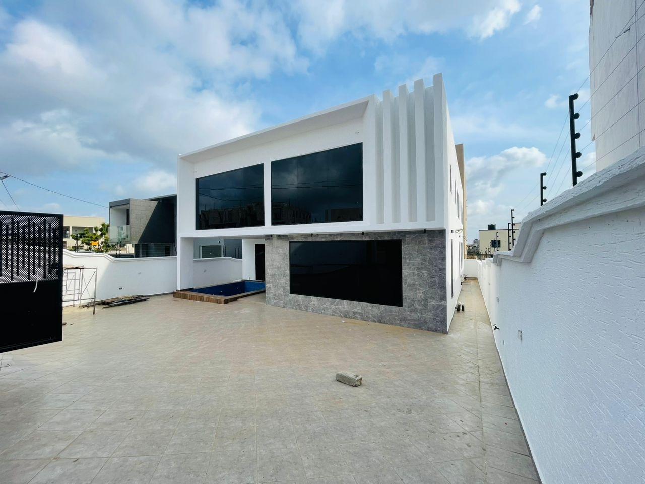 Discover luxurious living in this beautifully finished 5-bedroom home, perfectly positioned at the Lakeside Community 8 Roundabout. Designed to offer comfort, style, and functionality, this property is ideal for both family living and high-end investment. Property Features: Spacious living and dining area Fitted open kitchen with modern cabinetry Guest washroom Family area for private relaxation Storage room Fitted ACs and wardrobes in all rooms Master bedroom with walk-in closet Master suite with a stunning view Dedicated alarm/CCTV room for enhanced security Balcony for outdoor lounging Spacious tiled compound Beautiful swimming pool