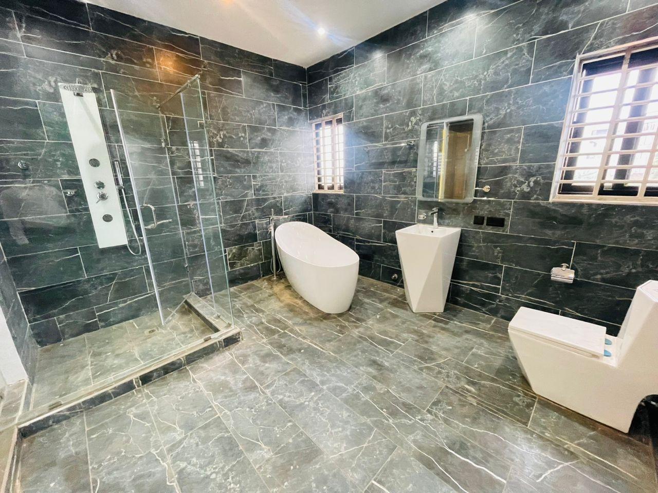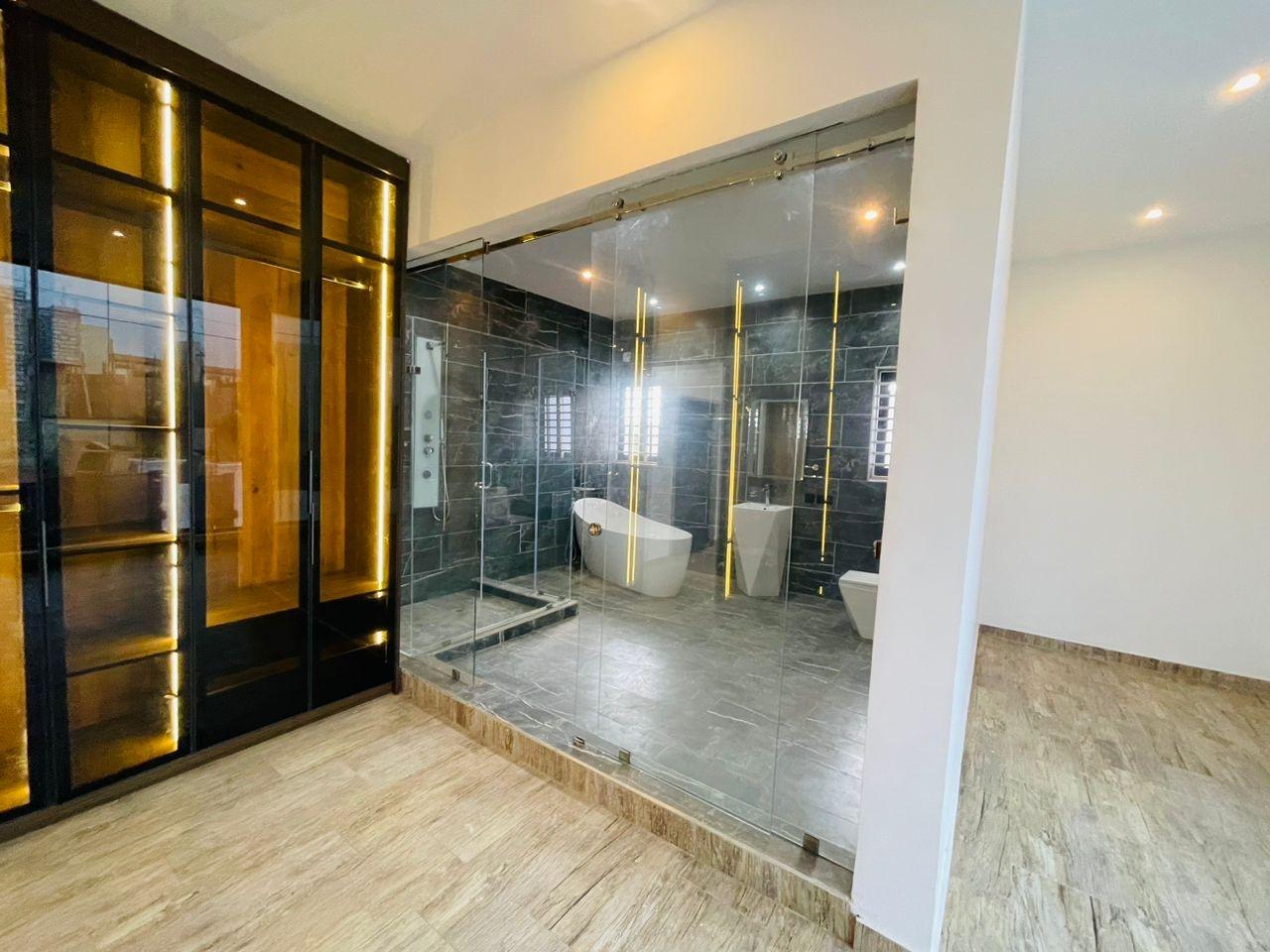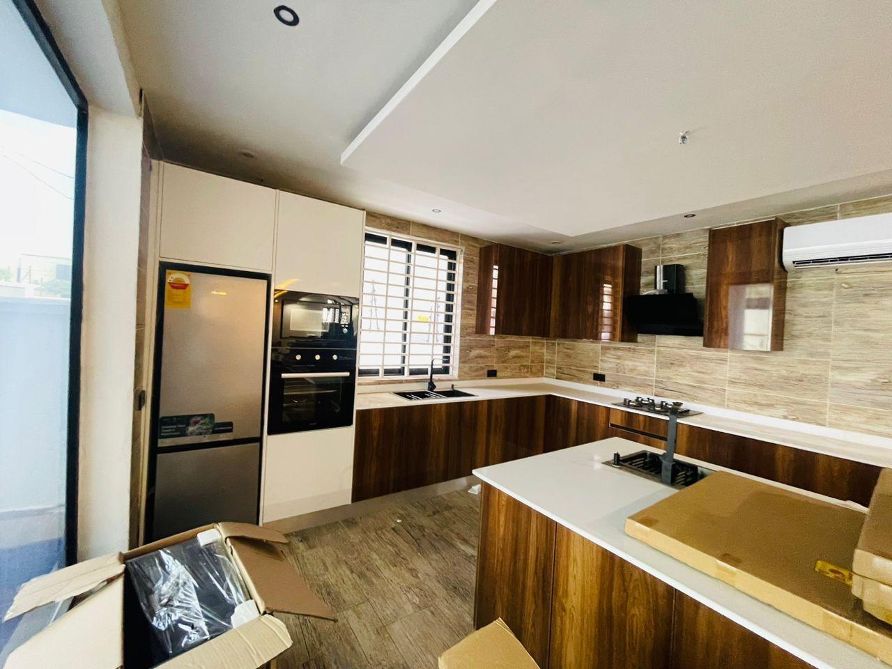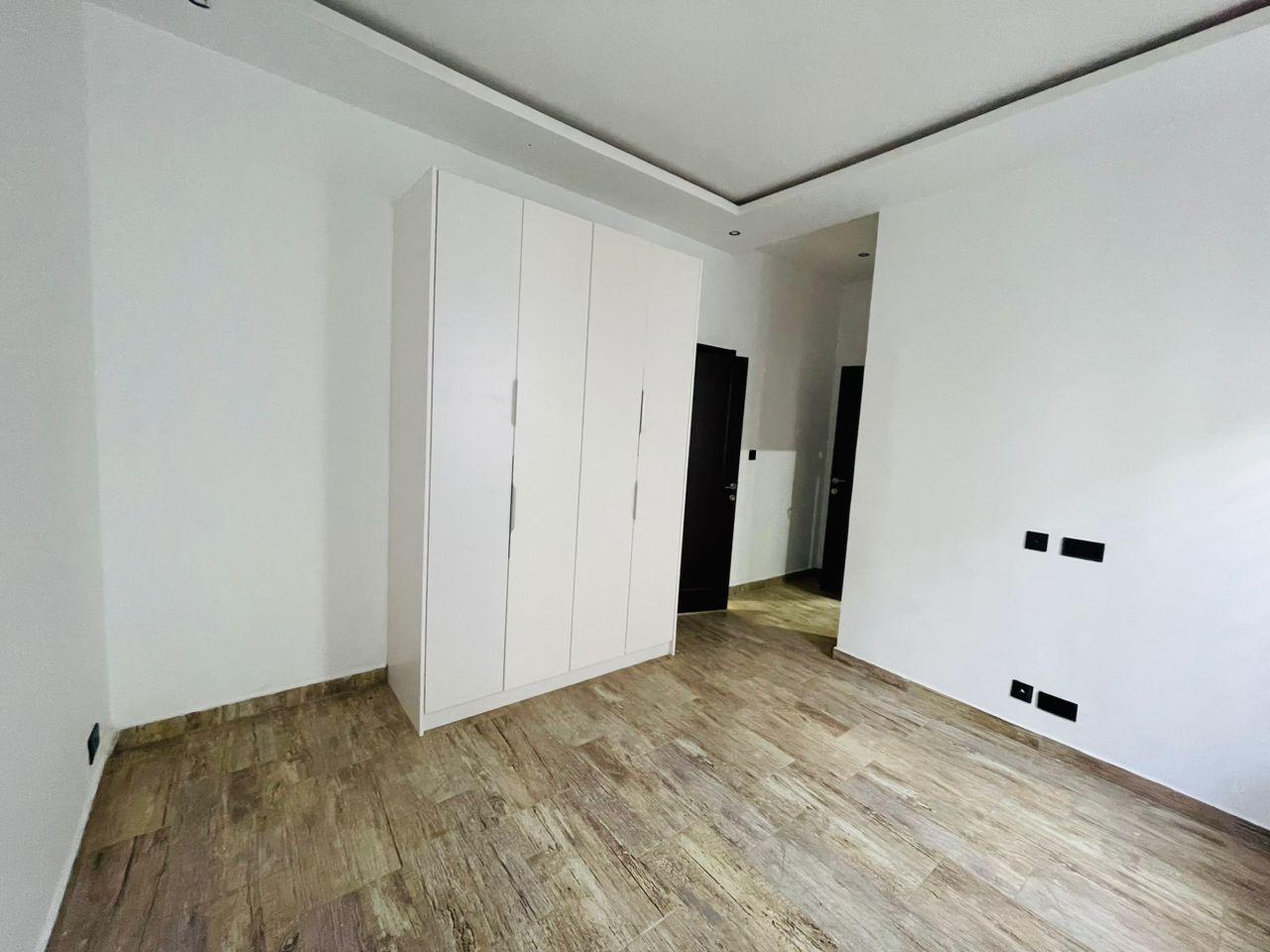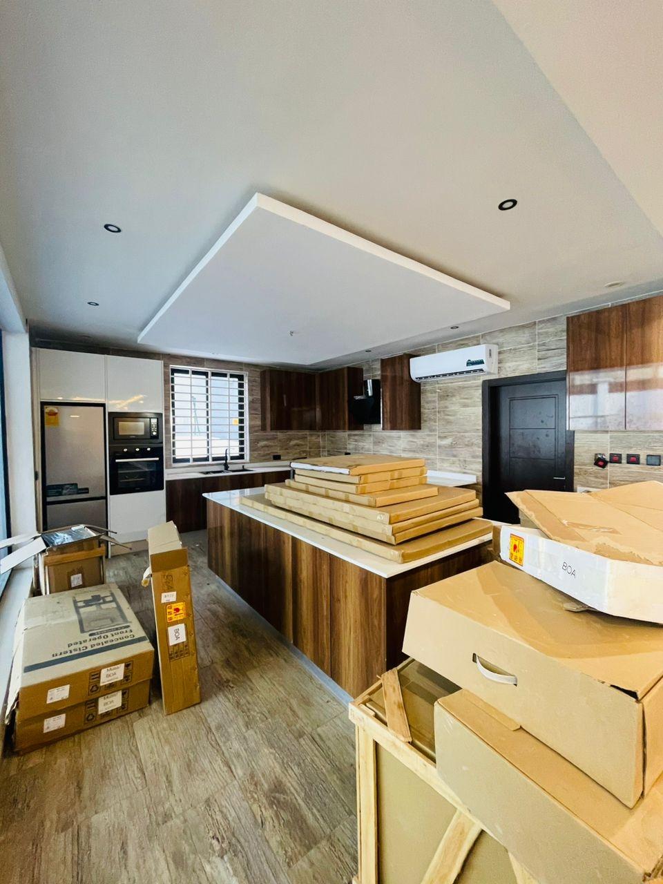 Discover luxurious living in this beautifully finished 5-bedroom home, perfectly positioned at the Lakeside Community 8 Roundabout. Designed to offer comfort, style, and functionality, this property is ideal for both family living and high-end investment. Property Features: Spacious living and dining area Fitted open kitchen with modern cabinetry Guest washroom Family area for private relaxation Storage room Fitted ACs and wardrobes in all rooms Master bedroom with walk-in closet Master suite with a stunning view Dedicated alarm/CCTV room for enhanced security Balcony for outdoor lounging Spacious tiled compound Beautiful swimming pool