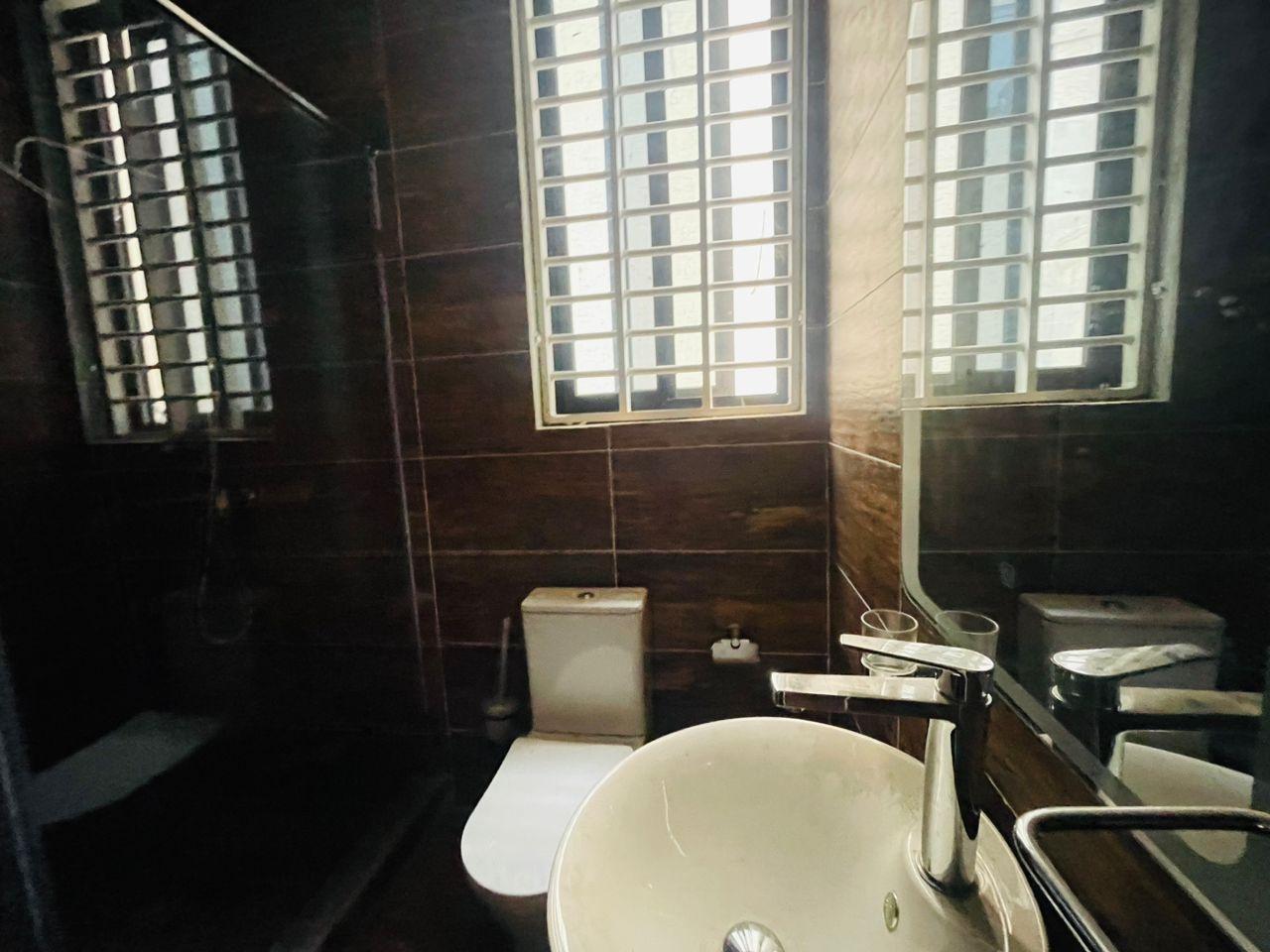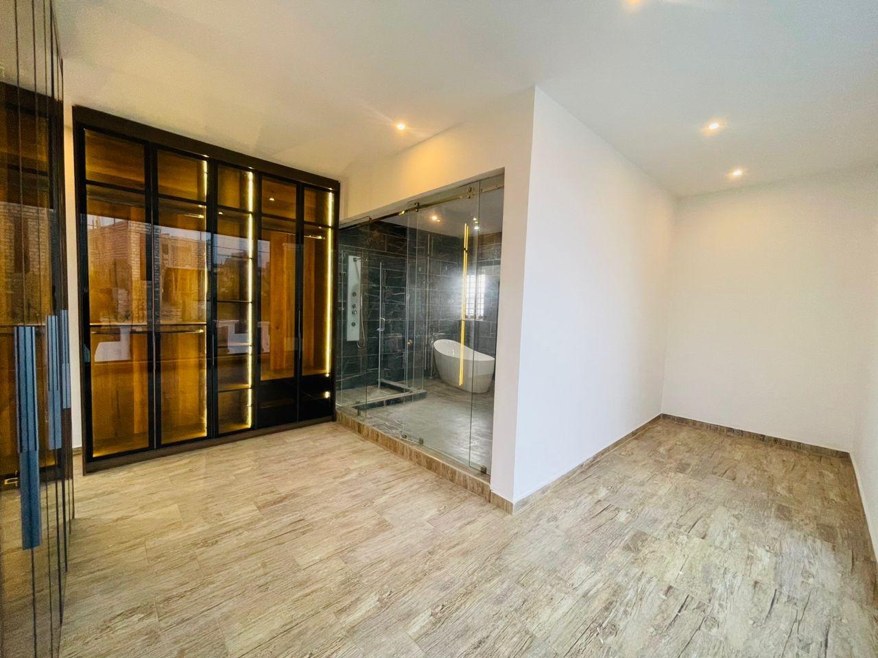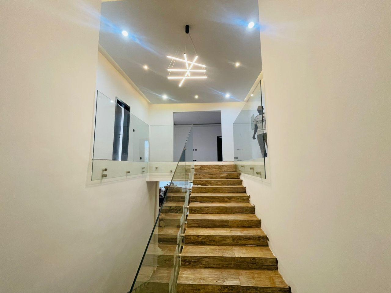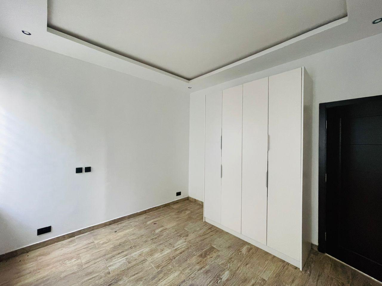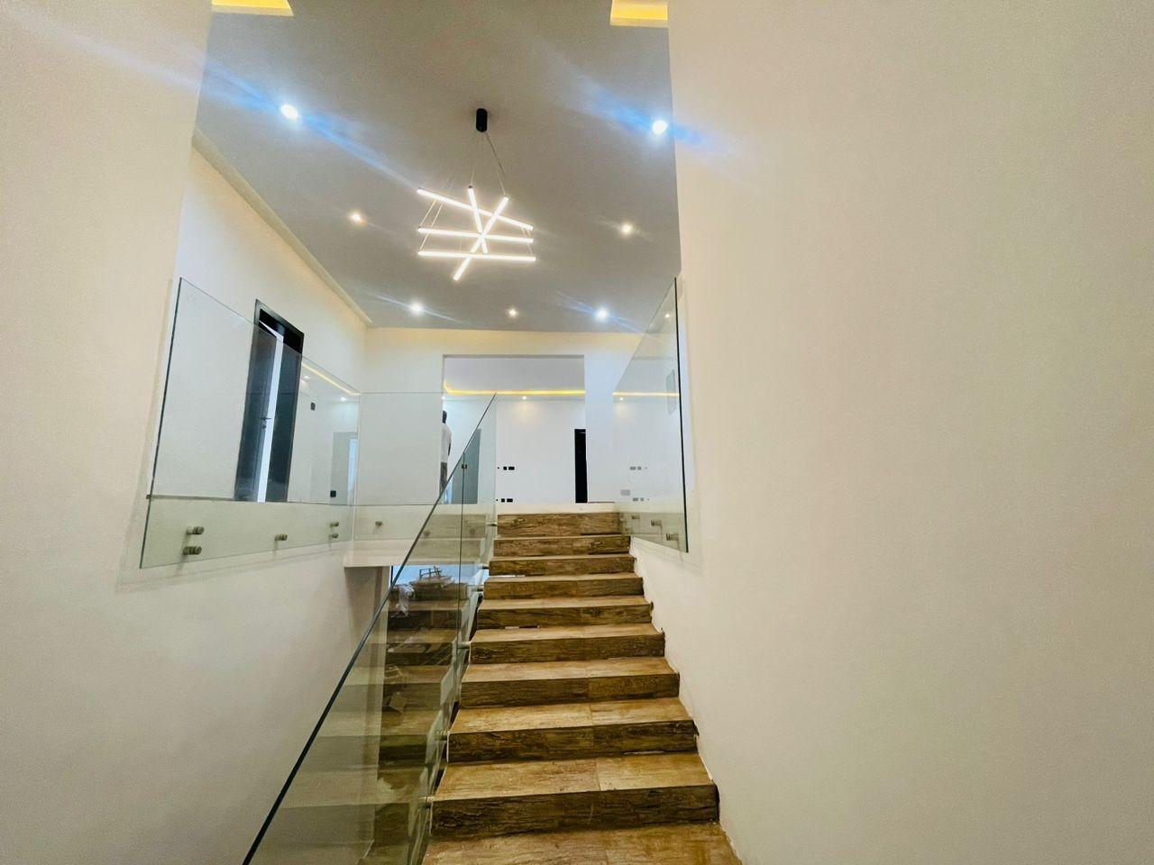 Discover luxurious living in this beautifully finished 5-bedroom home, perfectly positioned at the Lakeside Community 8 Roundabout. Designed to offer comfort, style, and functionality, this property is ideal for both family living and high-end investment. Property Features: Spacious living and dining area Fitted open kitchen with modern cabinetry Guest washroom Family area for private relaxation Storage room Fitted ACs and wardrobes in all rooms Master bedroom with walk-in closet Master suite with a stunning view Dedicated alarm/CCTV room for enhanced security Balcony for outdoor lounging Spacious tiled compound Beautiful swimming pool