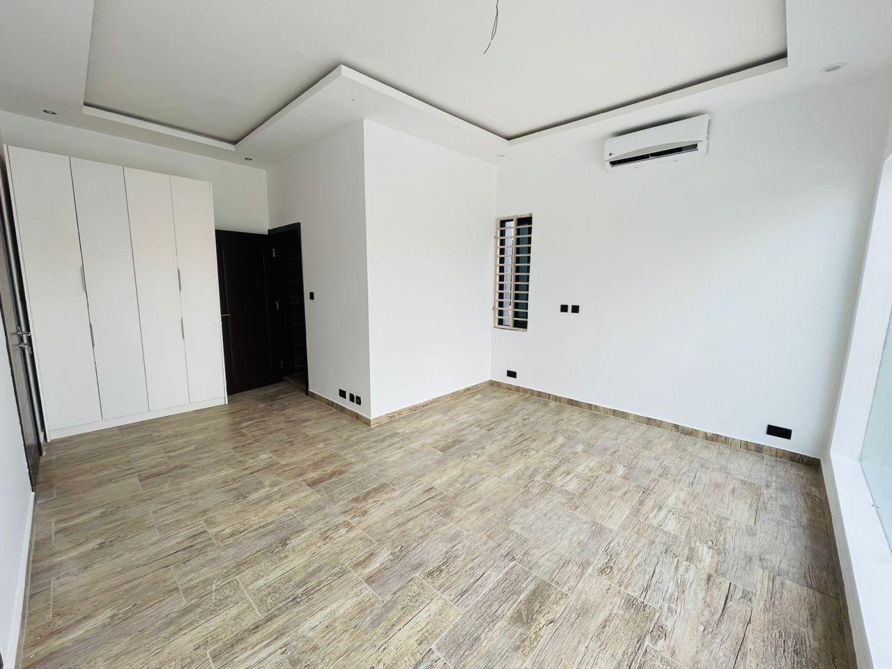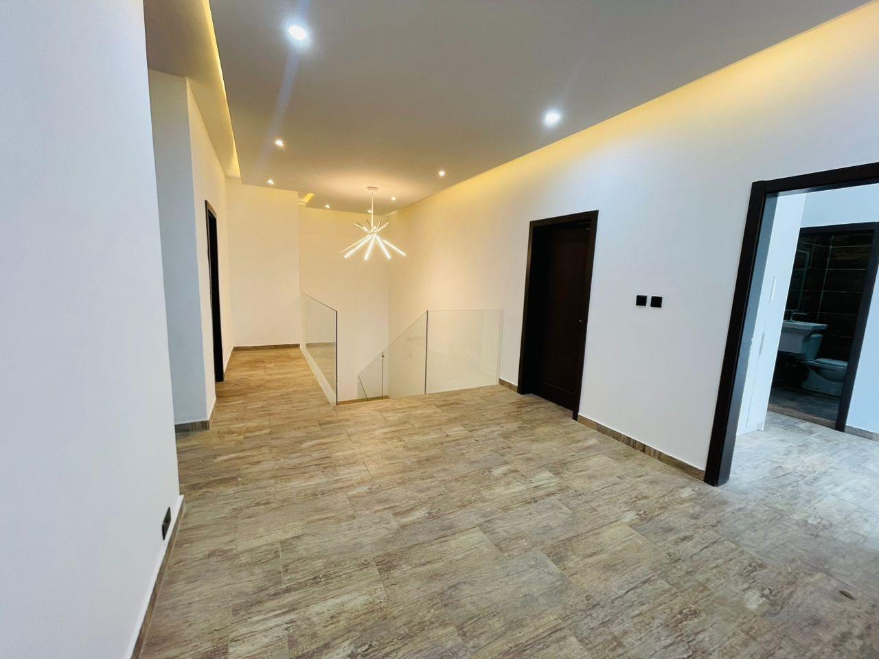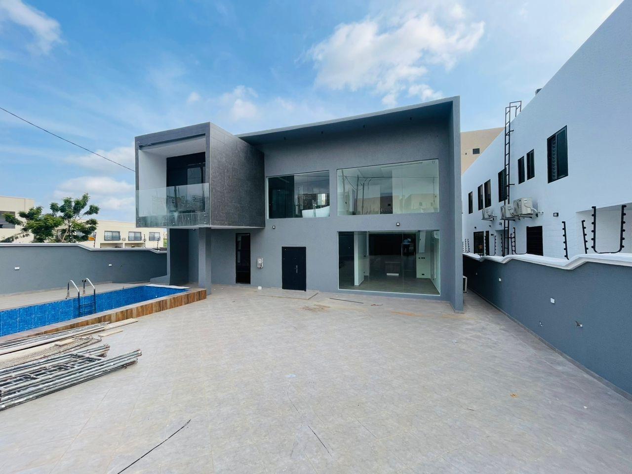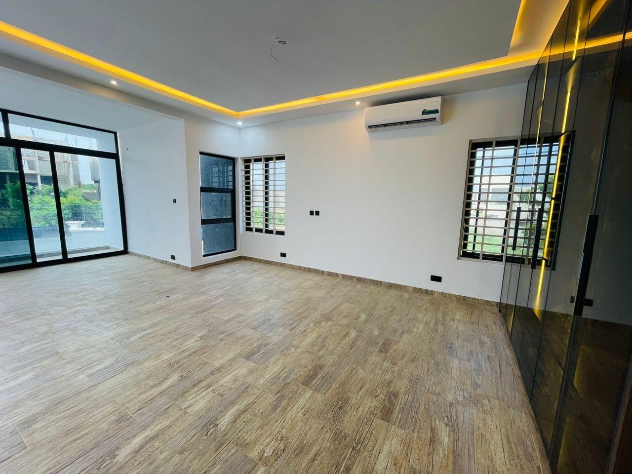 Experience refined living in this elegant 5-bedroom home strategically located near the Lakeside Community 8 Roundabout. Designed with comfort, style, and functionality in mind, this property offers everything you need for premium family living. Property Features: Spacious living and dining area Modern fitted open kitchen Guest washroom Cozy family area Storage room Fitted ACs and wardrobes in all rooms Walk-in closet in the master bedroom Master bedroom with a beautiful view Dedicated alarm/CCTV control room Balcony for relaxation Spacious, fully tiled compound Private swimming pool