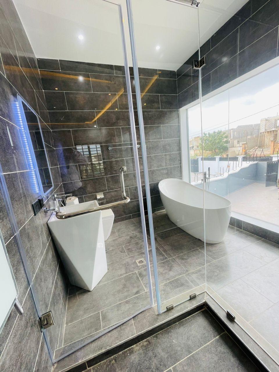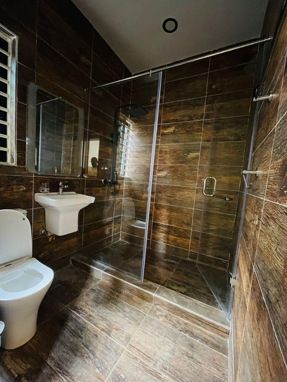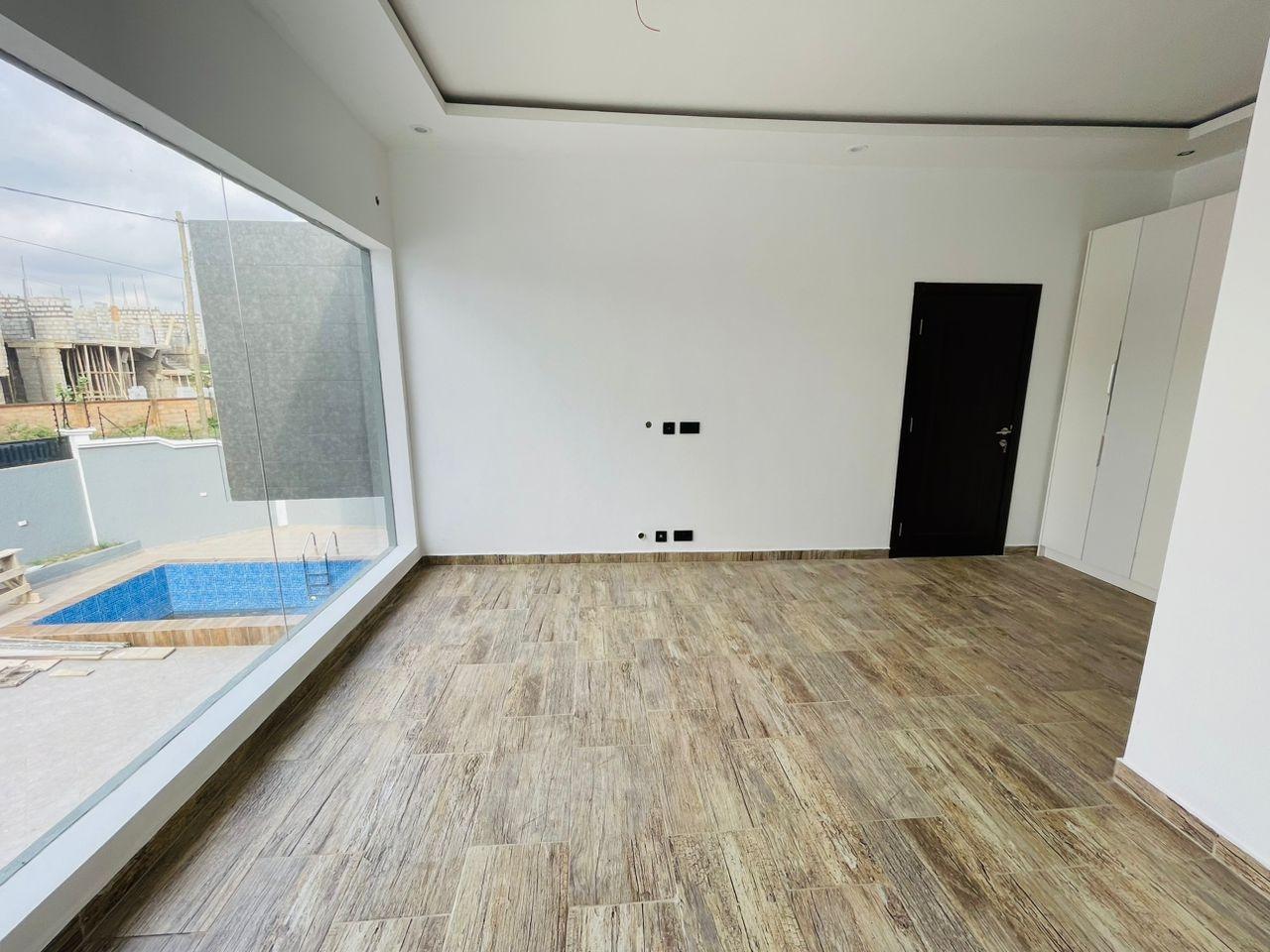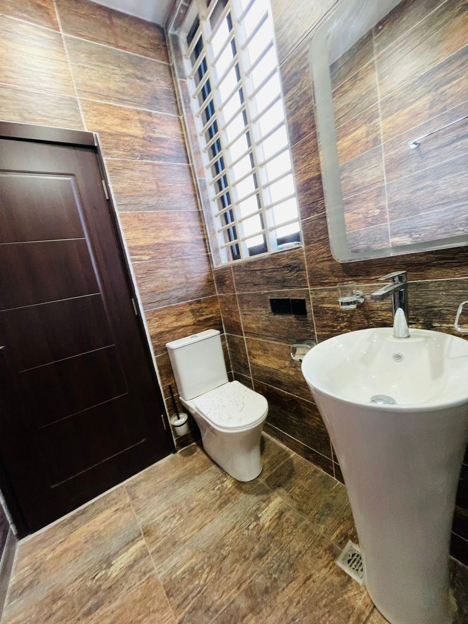 Experience refined living in this elegant 5-bedroom home strategically located near the Lakeside Community 8 Roundabout. Designed with comfort, style, and functionality in mind, this property offers everything you need for premium family living. Property Features: Spacious living and dining area Modern fitted open kitchen Guest washroom Cozy family area Storage room Fitted ACs and wardrobes in all rooms Walk-in closet in the master bedroom Master bedroom with a beautiful view Dedicated alarm/CCTV control room Balcony for relaxation Spacious, fully tiled compound Private swimming pool