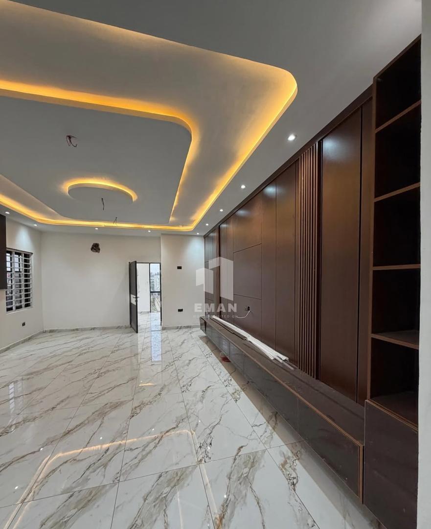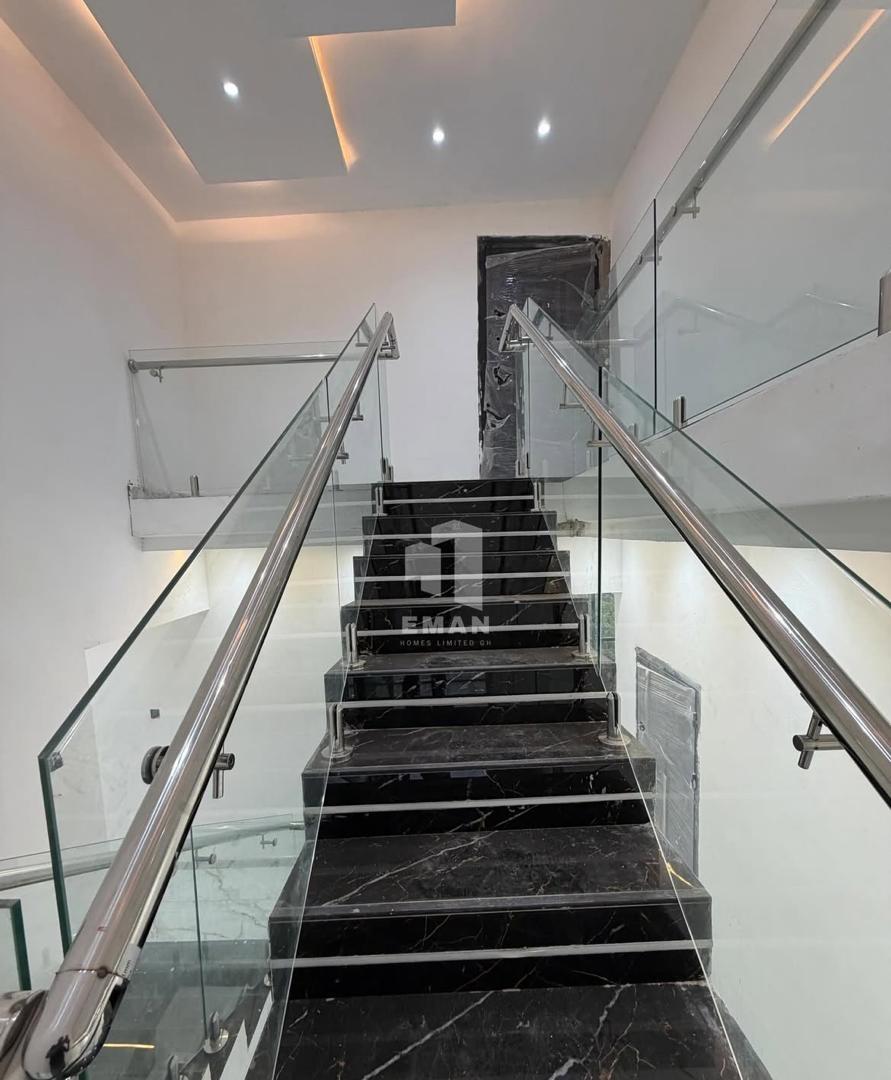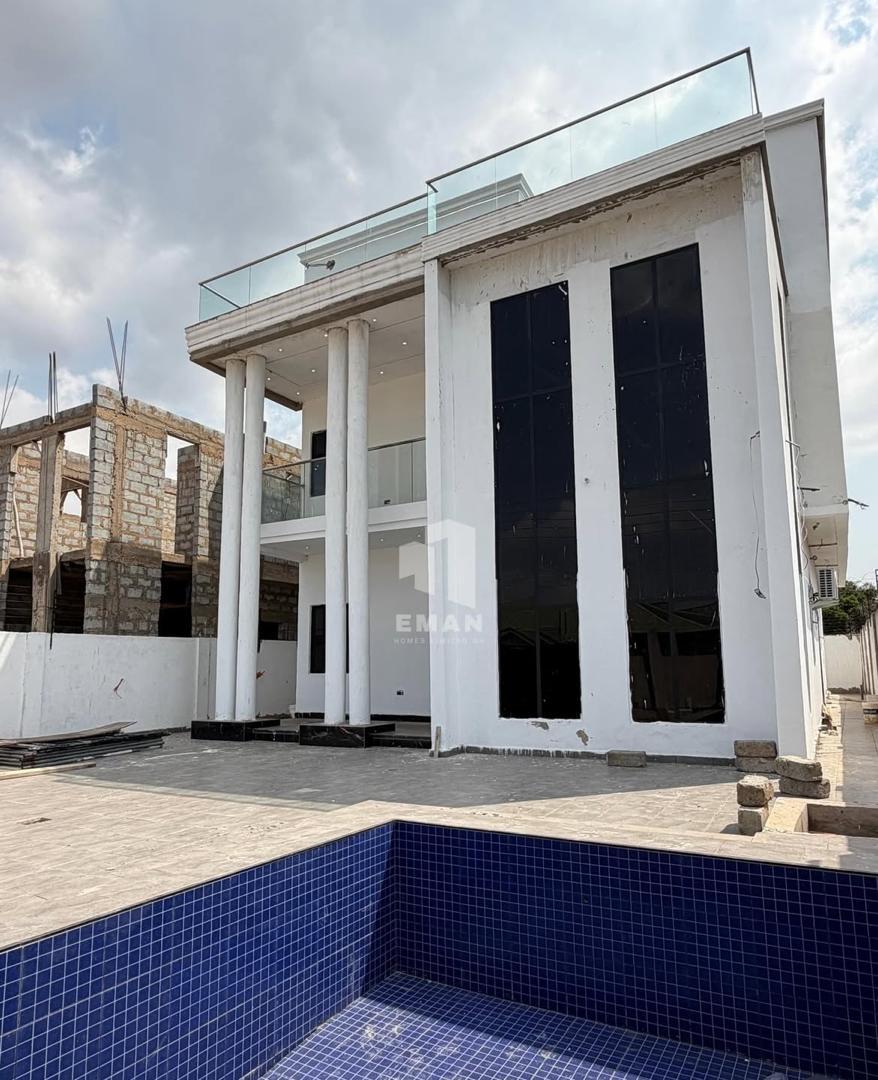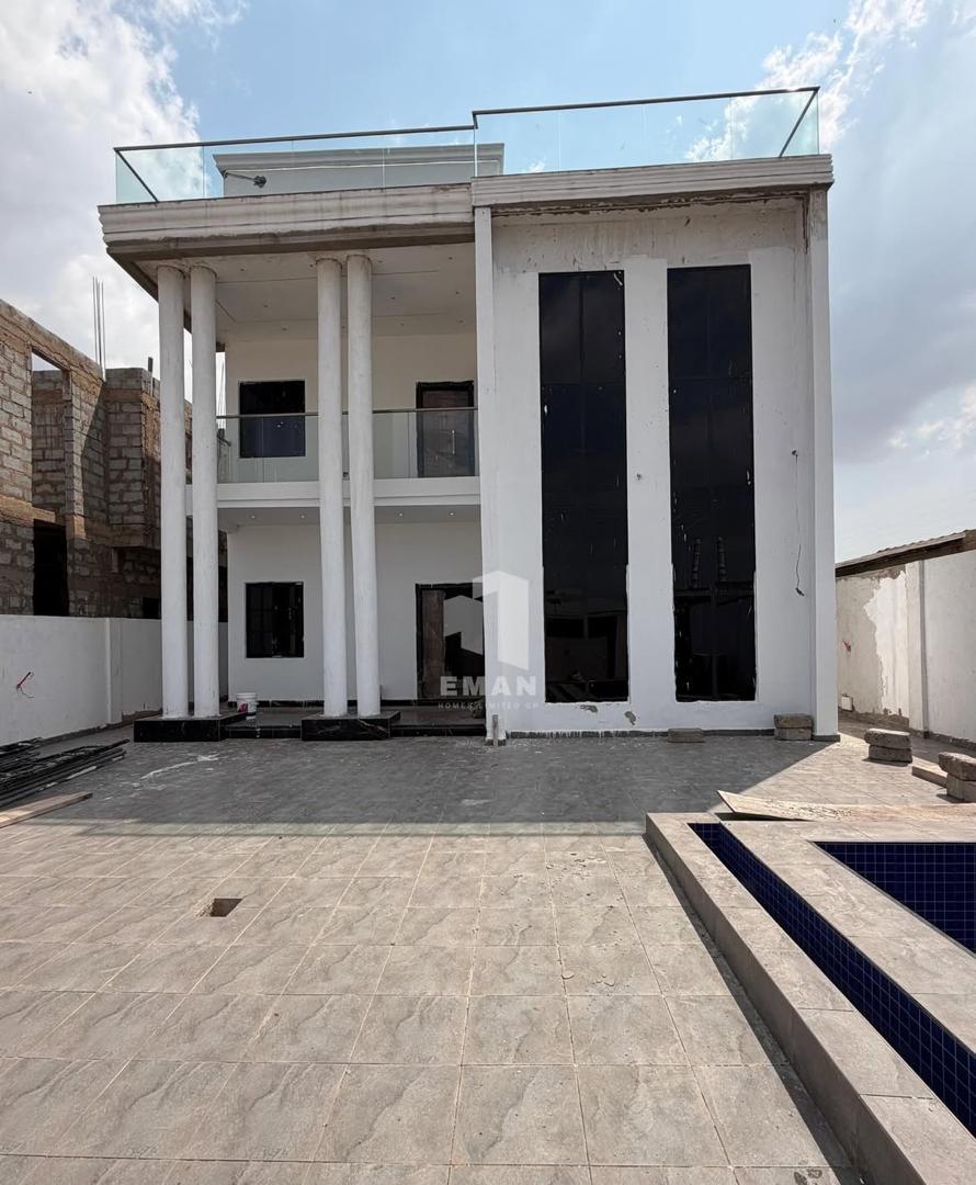 4-bedroom luxury home with a swimming pool and boys' quarters located at Botwe. The property sits on a 40 by 100 plot in a secure and well-developed neighborhood, ideal for family living. It features a fitted kitchen, two living areas, a pantry, and a guest washroom, finished with pop ceilings, two balconies, and ambient lighting. Buyers can choose between a finished ($400000) or an unfurnished ($380000) option both negotiable.