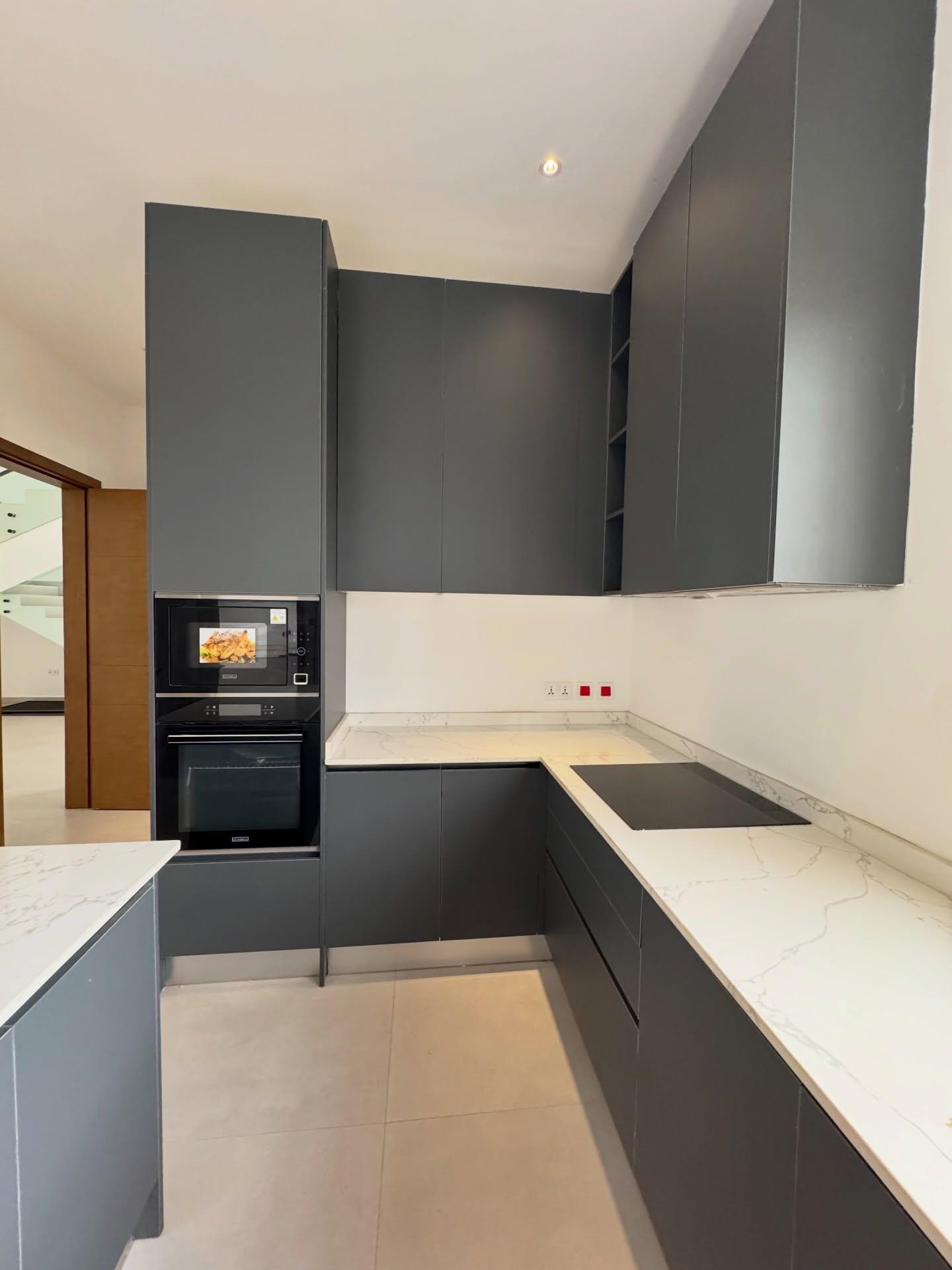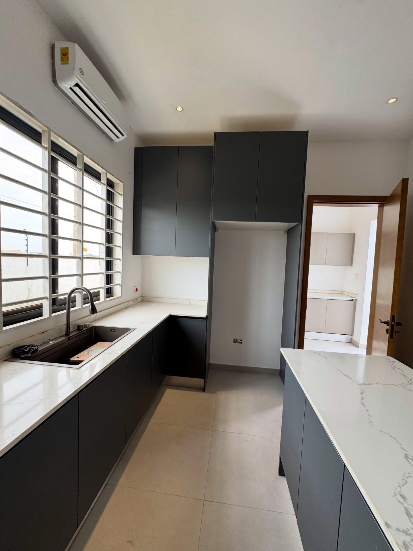 Specifications; ▪️3 beds 🛌, 4.5 baths 🛀 ▪️All rooms en-suite. ▪️Boysquaters. ▪️Tittled land. ▪️land size is 35 by 100 ▪️living area. ▪️Huge dinning area ▪️pantry. ▪️Store room ▪️Familu lounge. ▪️2 kitchens. ▪️Furnished kitchen. ▪️walk in closet ▪️wardrobes. ▪️Air conditioners installed. ▪️good location. ▪️Mortgage payment allowed.