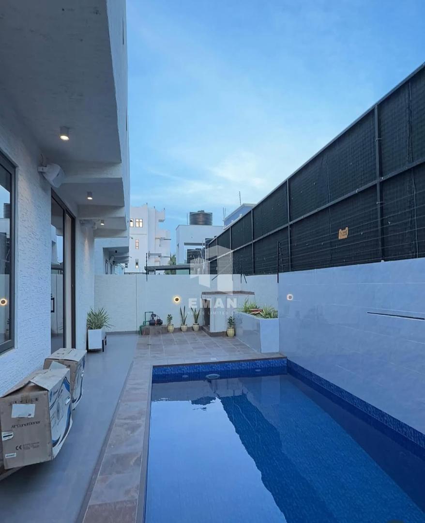 A modern 4-bedroom en-suite home with a boys' quarters, private swimming pool, and a fully fitted kitchen, located in a secure and serene neighborhood. Price is negotiable