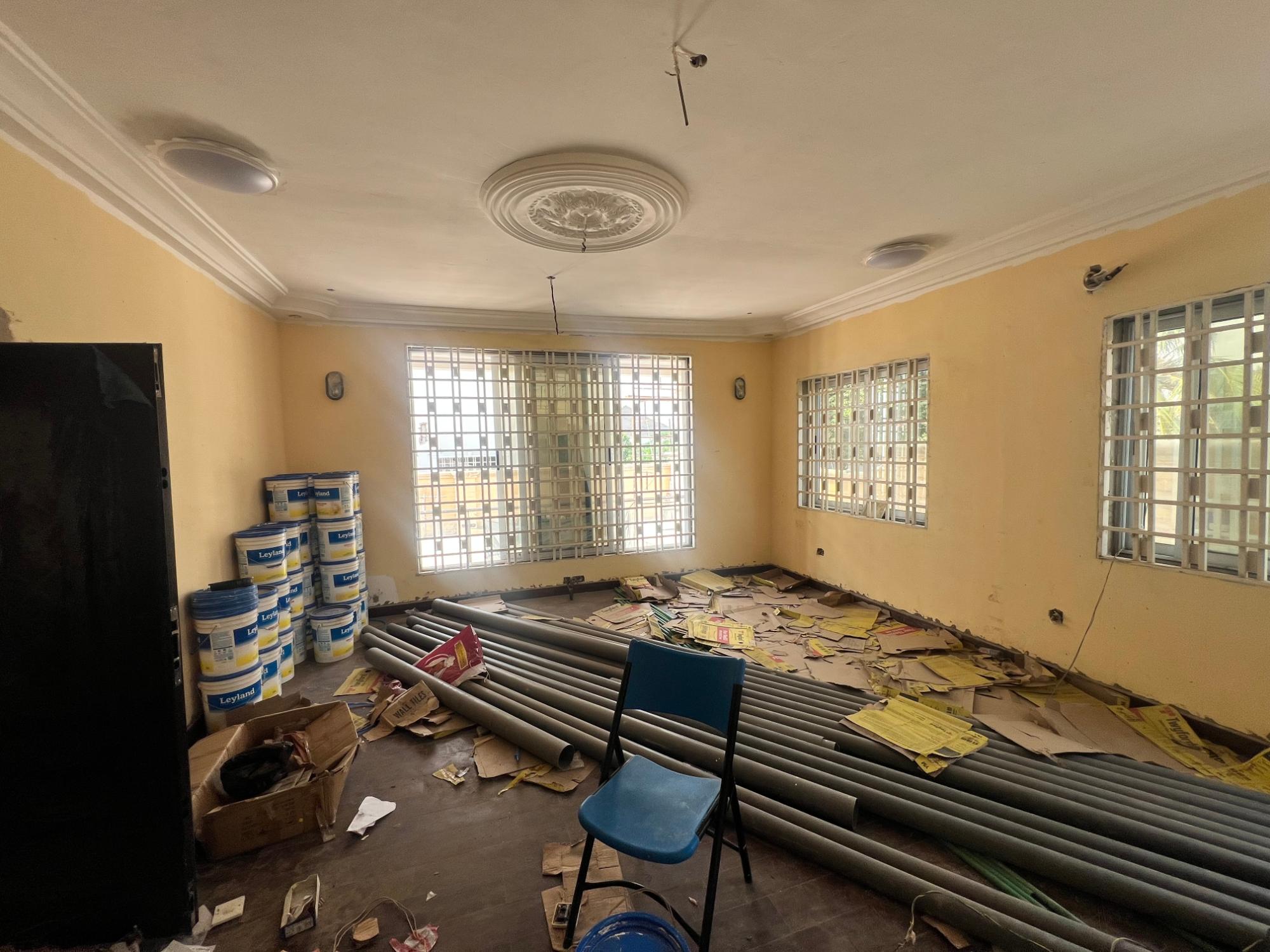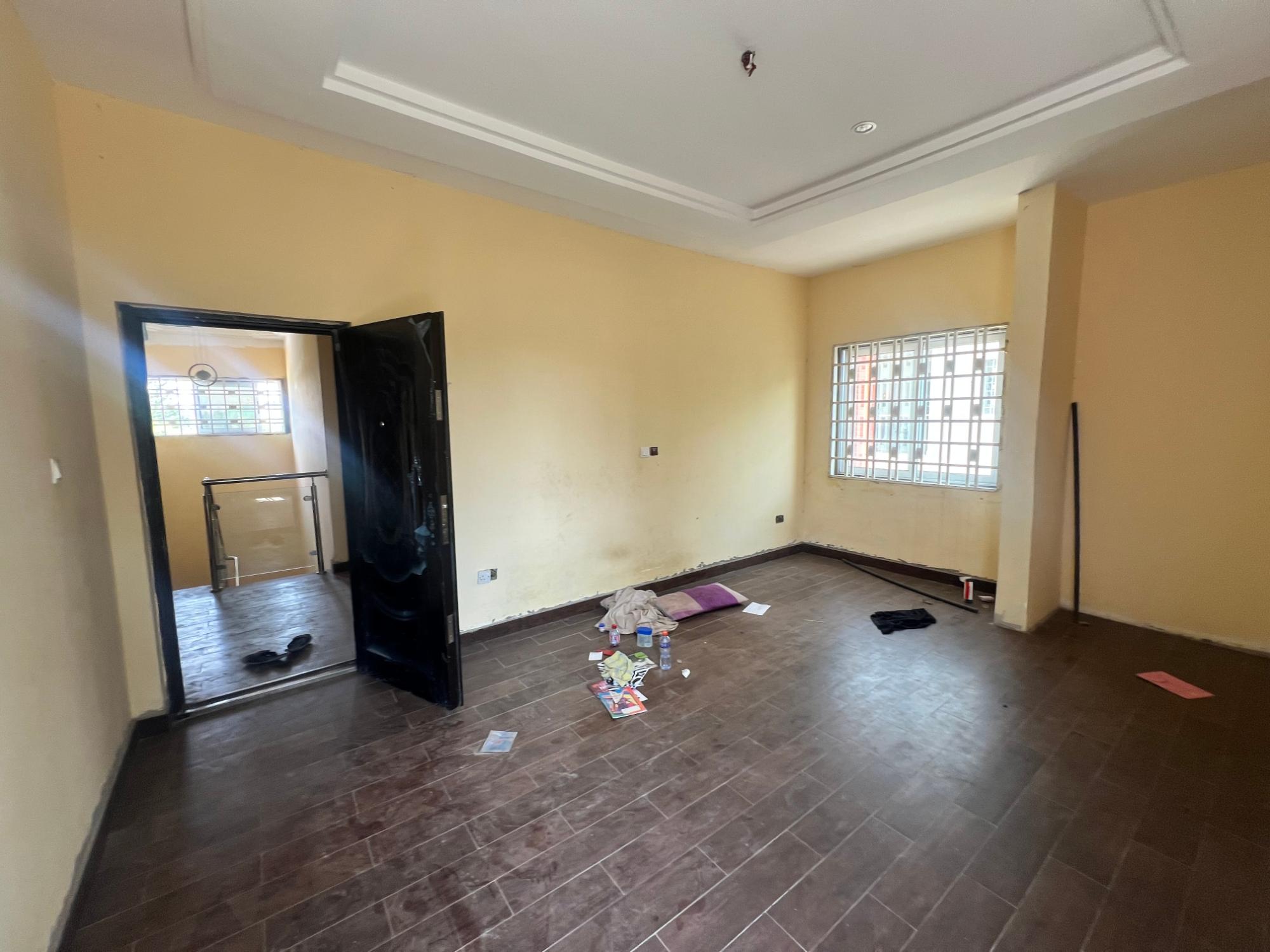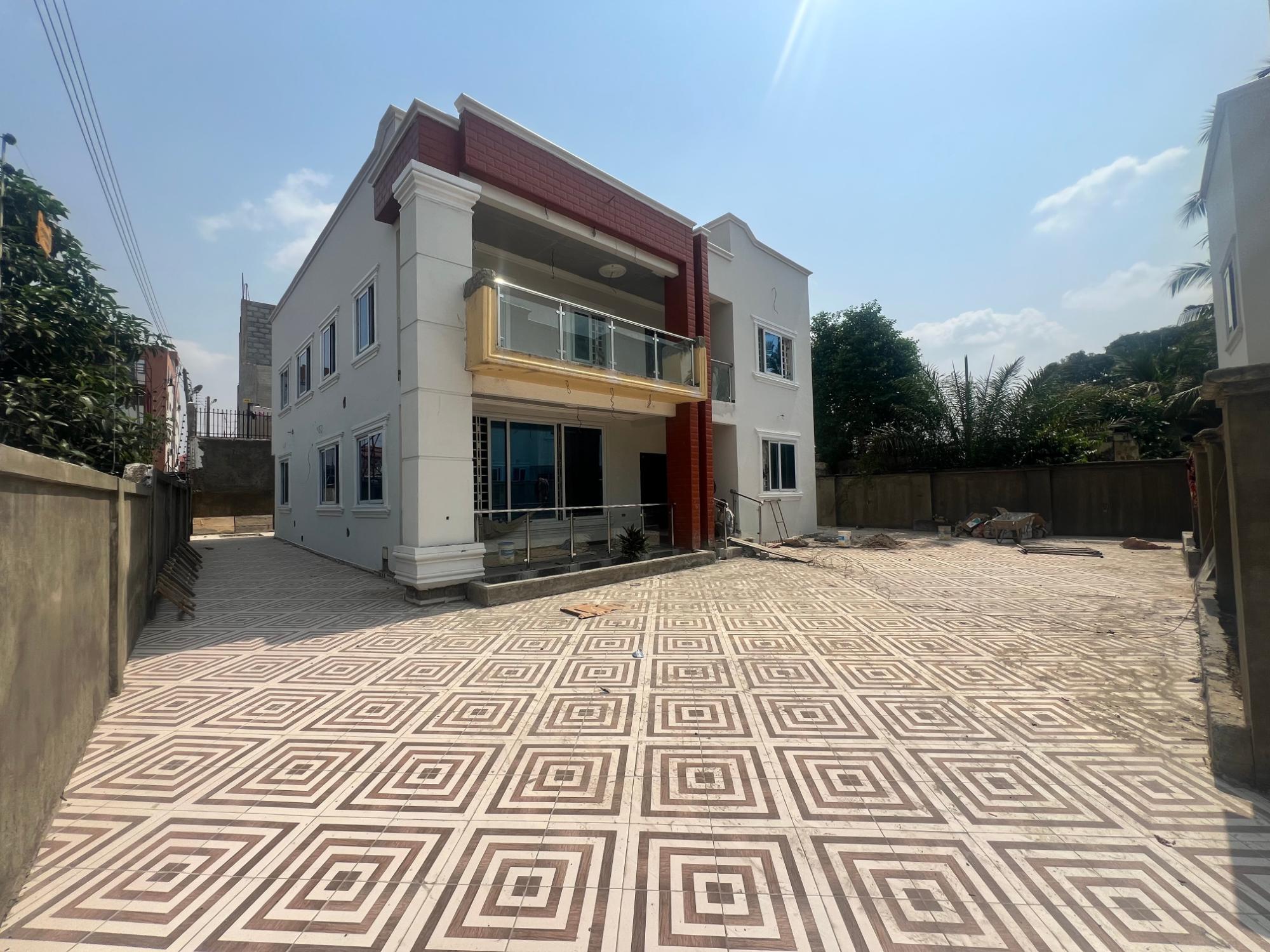 5 bed house withing a serene environment and very clean society with all roads asphalted. It connect easily with the main Legon Madina high way. There is water available Self large compound Layout community All rooms installed with Ac Fitted kitchen and a lot more