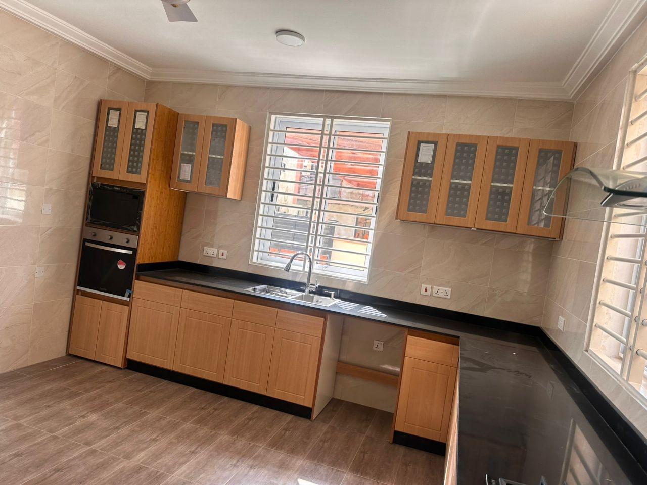 For Rent 3 Bedrooms Ensuite Storey Detached 3 bedrooms 4 washrooms Wardrobes in all rooms Guest washroom ACs installed Fitted kitchen with microwave, oven, stove and extractor Polytank Automated gate remote control Self compound Gated community 24hr security Easy access to major roads Broadband connection available Price : $1200/month