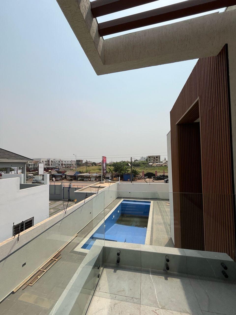 - 4 bedroom - One bedroom boys quarters - 2 Living Area - Open Kitchen - Fitted Kitchen - Parking space - Air conditioners installed - 5 Washroom - Swimming Pool - Security Post