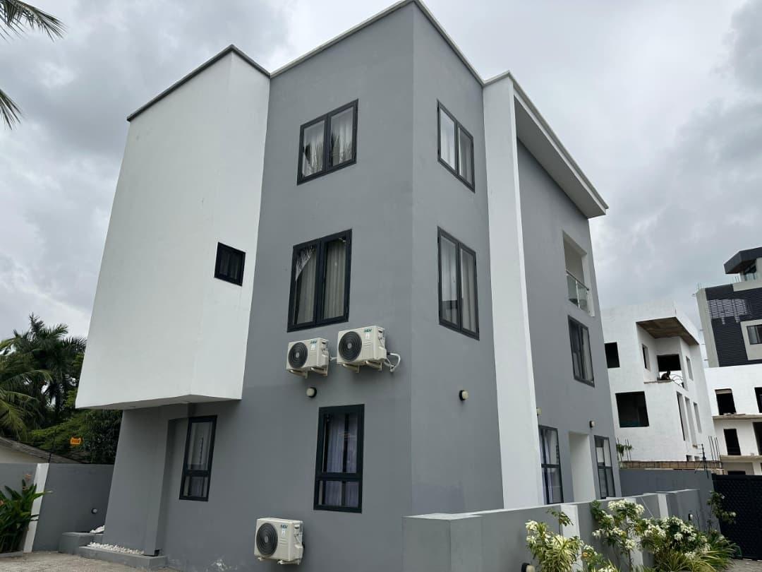 FEATURES Gated mini estate 24hrs Security 4 Bedrooms All rooms ensuite Guest washroom Standby Genset Cctv Furnished kitchen Air conditioning Washing Machine Water Heaters Polytank Balcony Tarred road