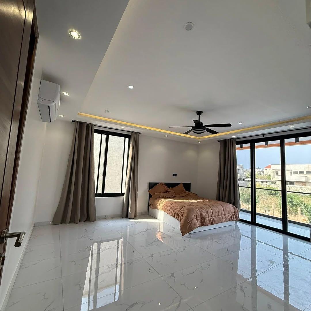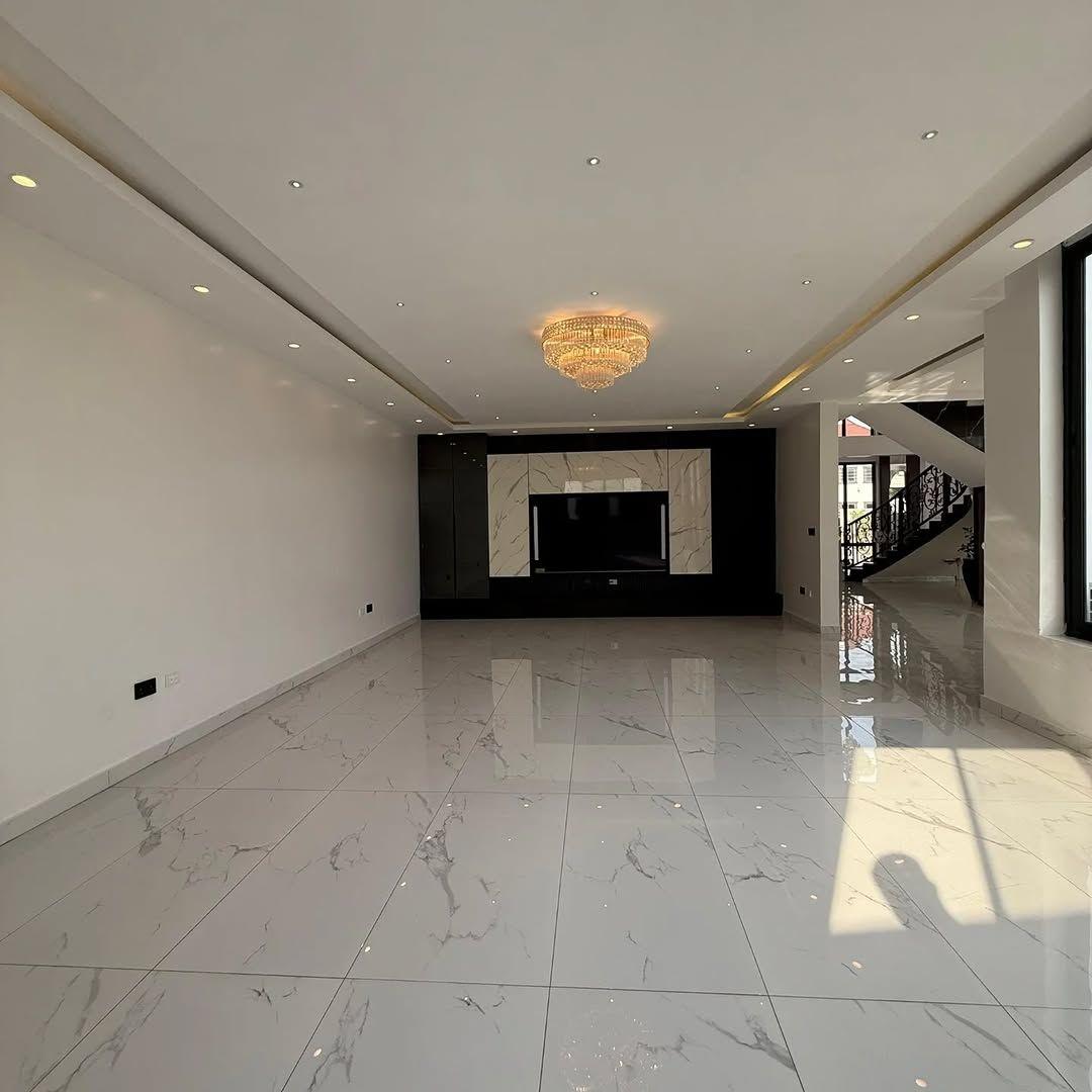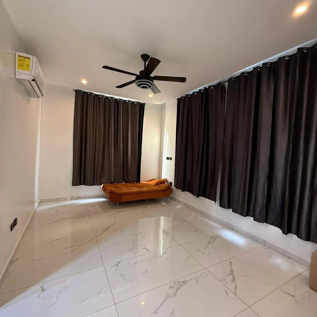 swimming pool, Pergola and a standby Gen Price: $650,000 (Negotiable) Features : All rooms are ensuite with a guest washroom 2 bedrooms downstairs. 1 master's bedroom with a bath tub. Spacious living area Dining space Fully furnished kitchen with inbuilt appliances Storage room Laundry room High ceiling Family Lounge 4 bedrooms upstairs. Balconies Great fenestration Nice washrooms with quality floor and wall tiles Quality and durable fixtures Very big swimming pool Pergola Standby Gen Serene and secured neighborhood Greenery Great neighbors Detailed finishes Titled land Full plot
